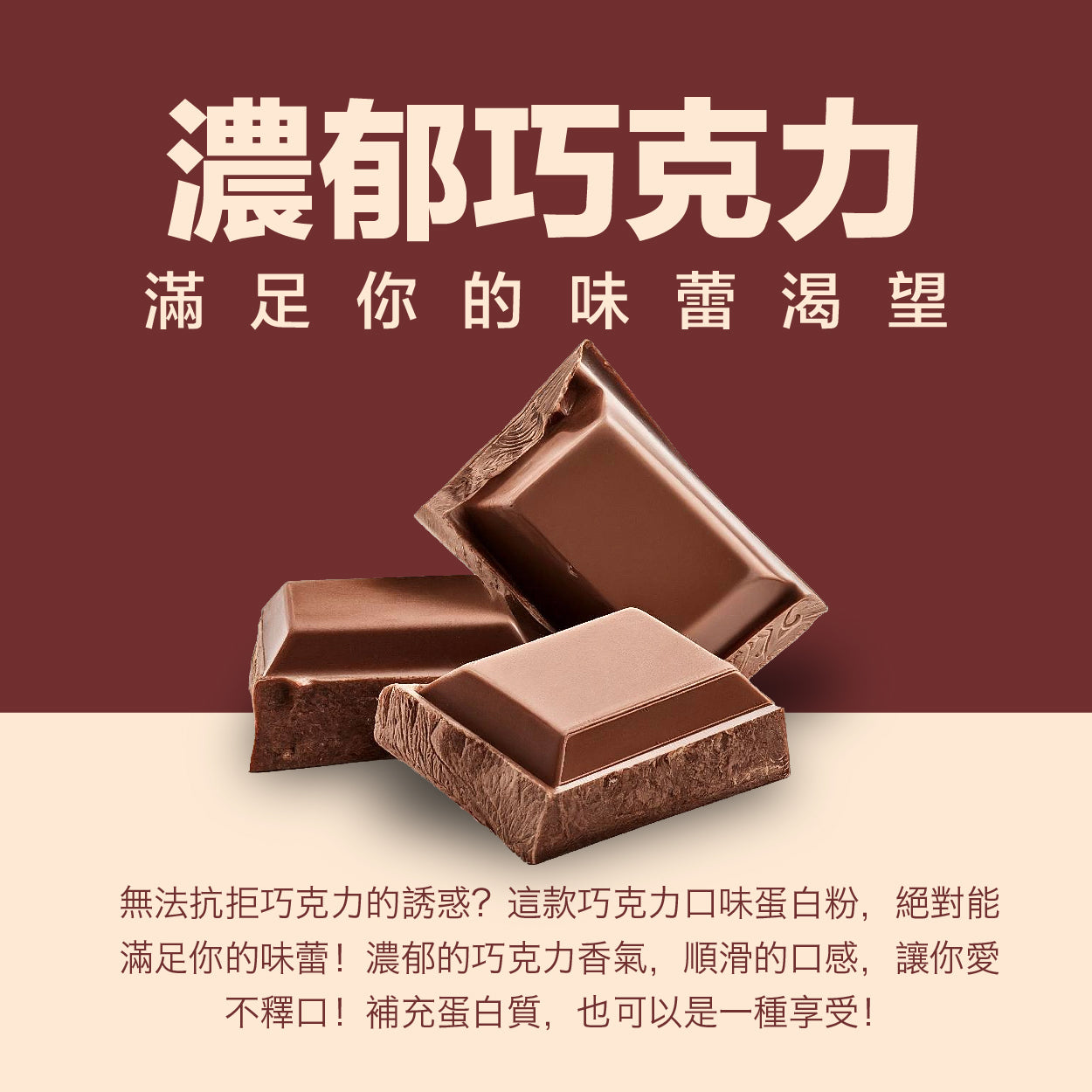 濃郁順滑的朱古力口味,運動後最期待的一杯。每份提供 21g 高蛋白質,支援肌肉修復與增長。富含 BCAA(支鏈胺基酸),其中 Leucine 在啟動肌肉蛋白合成方面特別重要,令訓練成果更快顯現。